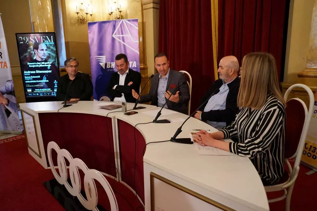 Predsjednik Music Arts Foundation (MAF) i umjetnički direktor SVEM-a Ninoslav Verber, direktor Sarajevske filharmonije Vedran Tuce, dekan Muzičke akademije Univerziteta u Sarajevu Ališer Sijarić i solista Simon Trpčeski, danas su na konferenciji za medije predstavili bogat program 29. SVEM-a.