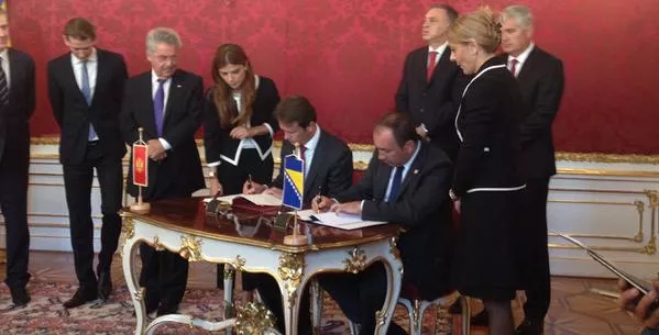 Bosna i Hercegovina i Crna Gora potpisale su danas u Beču međudržavni sporazum o granicama, a potpisnici su bili Igor Crnadak, ministar vanjskih poslova BiH i Raško Konjević, ministar unutrašnjih poslova Crne Gore, prenosi bh. novinska agencija Patria. Potpisivanju su prisustvovali i crnogorski predsjednik Filip Vujanović, kao i predsjedavajući Predsjedništva BiH Dragan Čović.