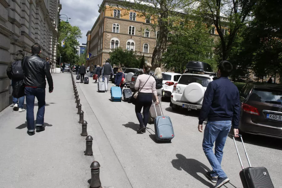 Oni su danas s putničkim koferima nakratko prošli ispred zgrade Vlade KS te se nešto duže zadržali u parku Davorina Popovića i Mirze Delibašića gdje su također održali performans.