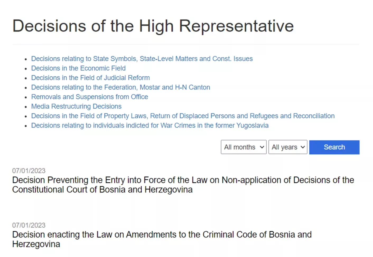 Uzimajući u obzir i imajući u vidu sva prethodno navedena pitanja, Visoki predstavnik ovim donosi sljedeće