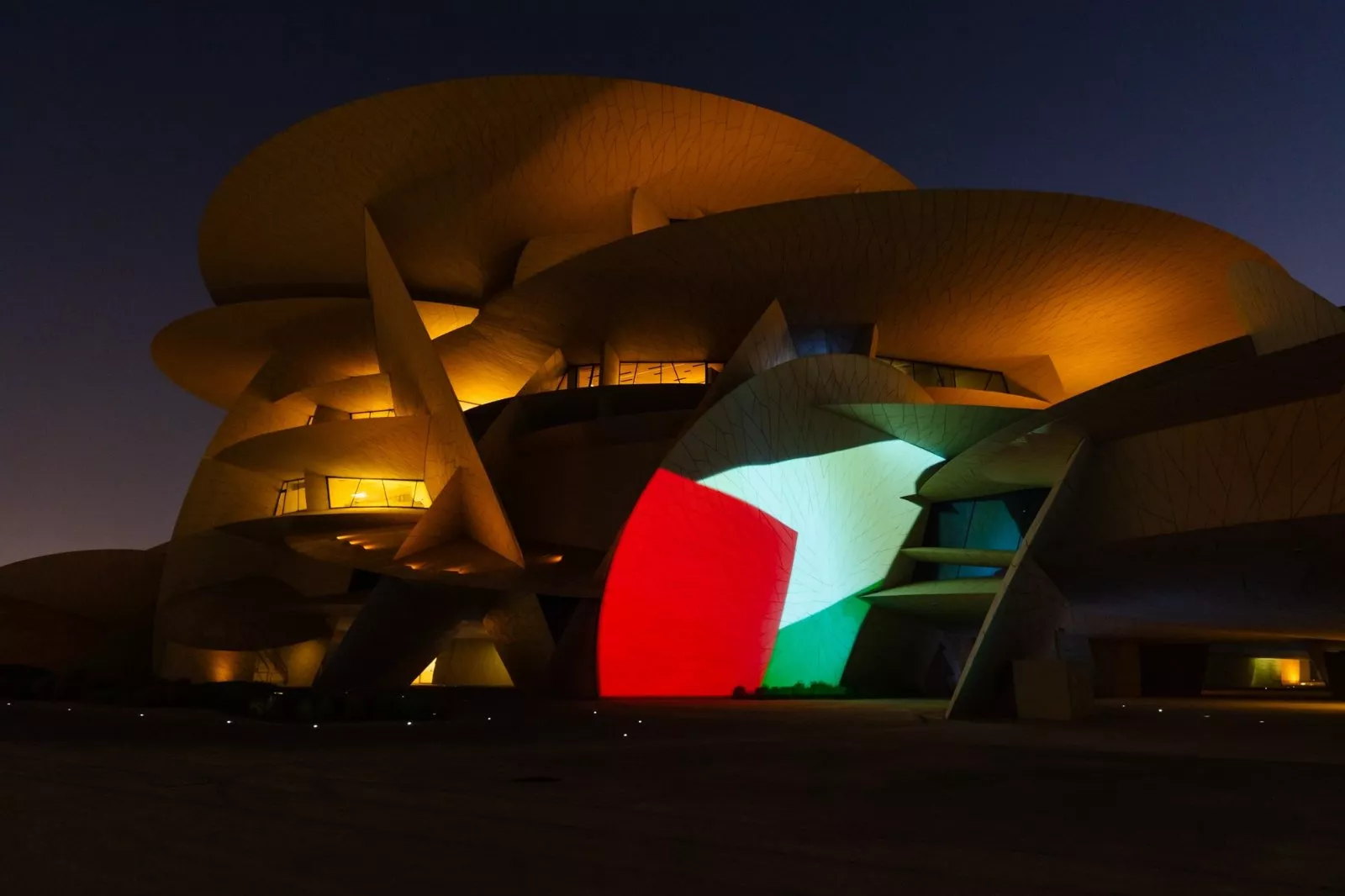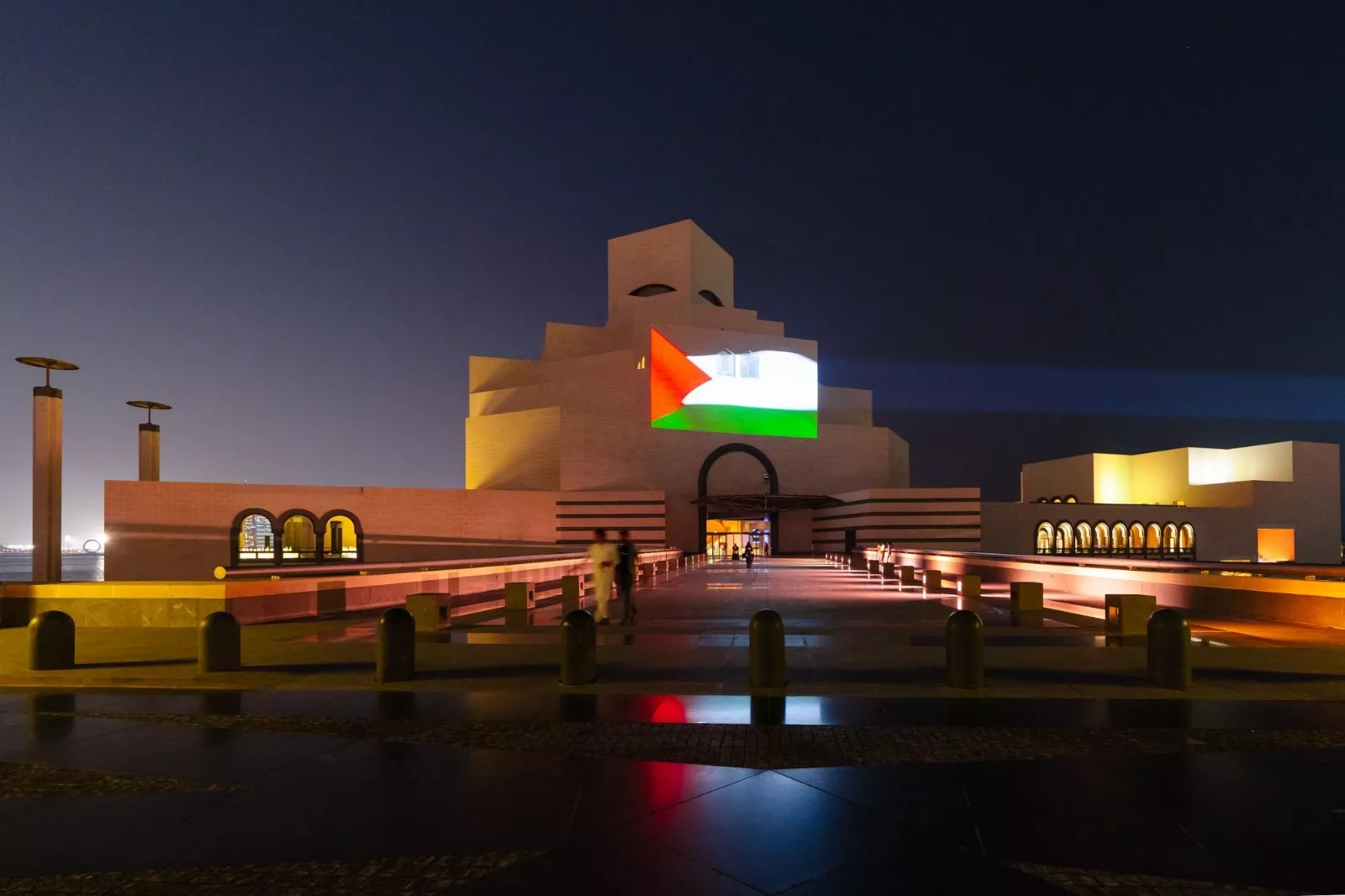 Nacionalni muzej Katara, čuveni Muzej islamske umjetnosti i poznata galerija Al Riwaq sinoć su osvijetljeni u bojama palestinske zastave u znak solidarnosti.