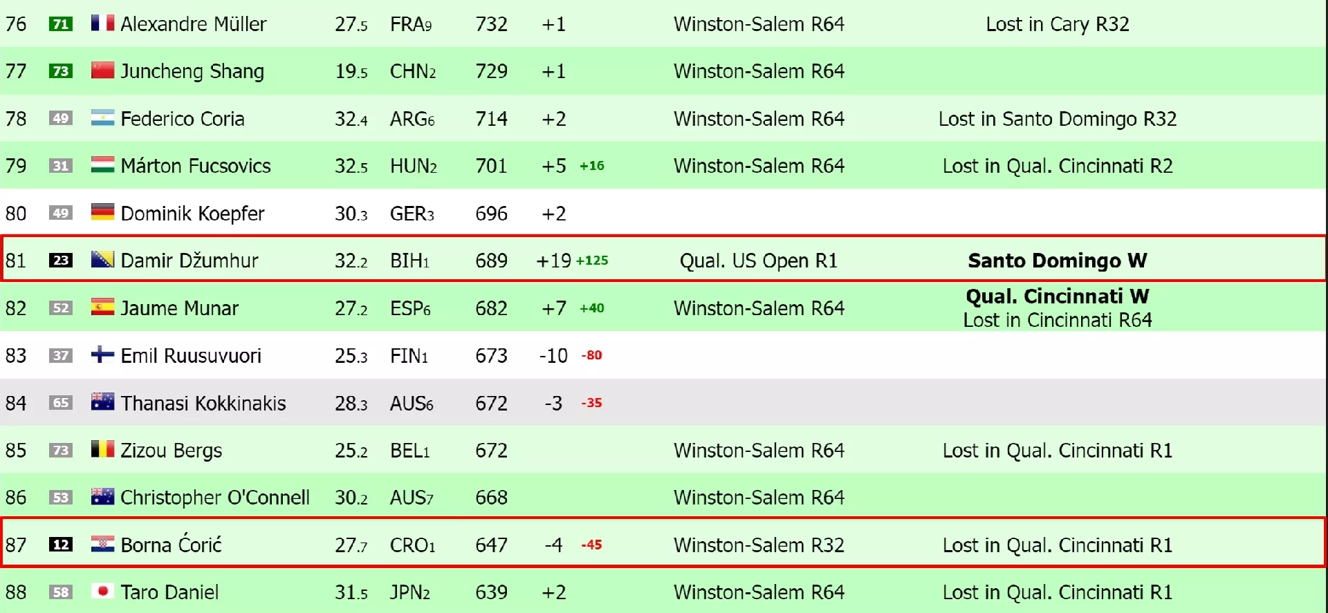 Ujedno je to i historijski trenutak za bh. tenis jer će Damir biti bolje rangiran od najboljeg hrvatskog tenisera Borne Ćorića, koji se od danas nalazi na 87. mjestu ATP ljestvice.