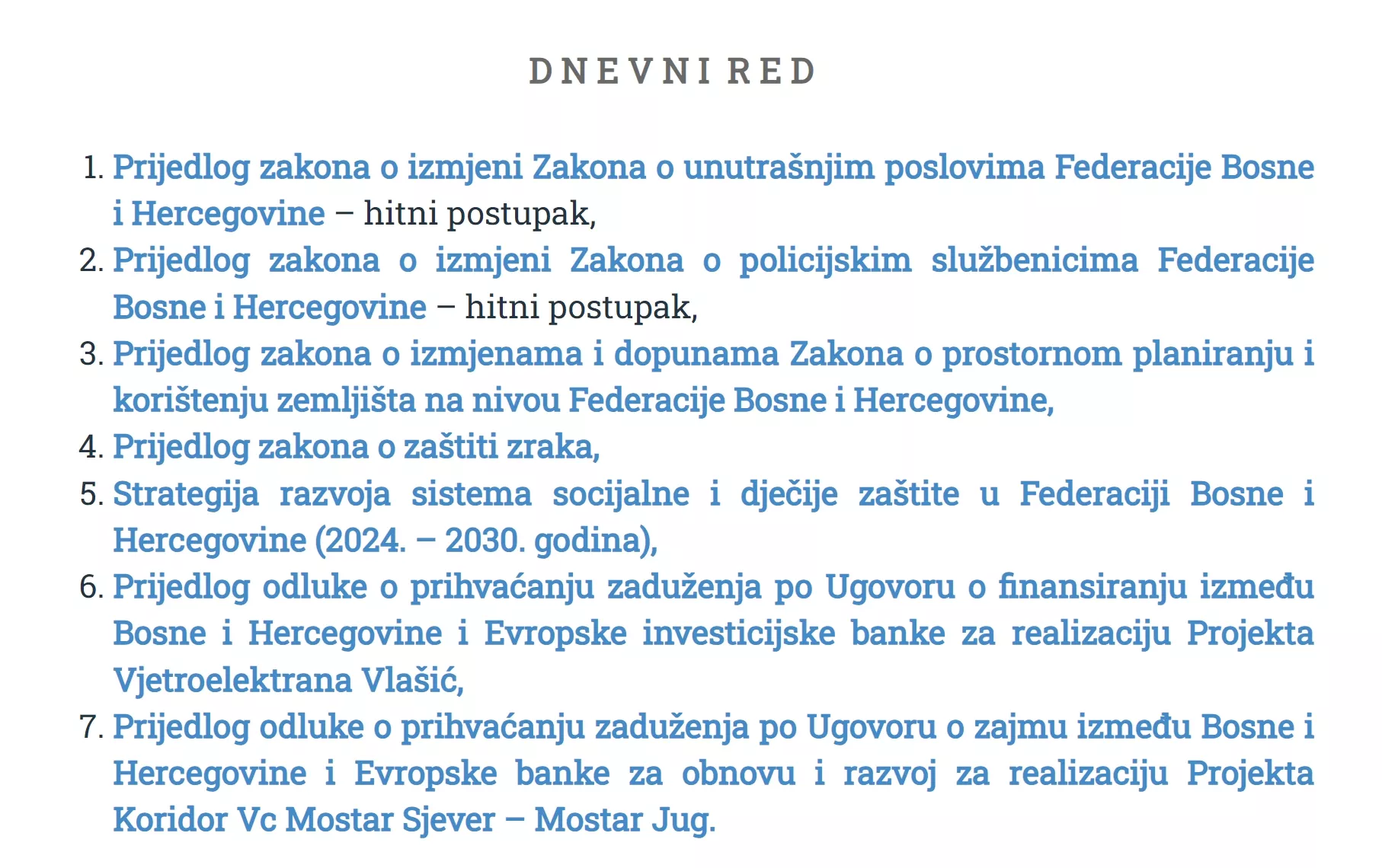 Predloženi dnevni red sjednice