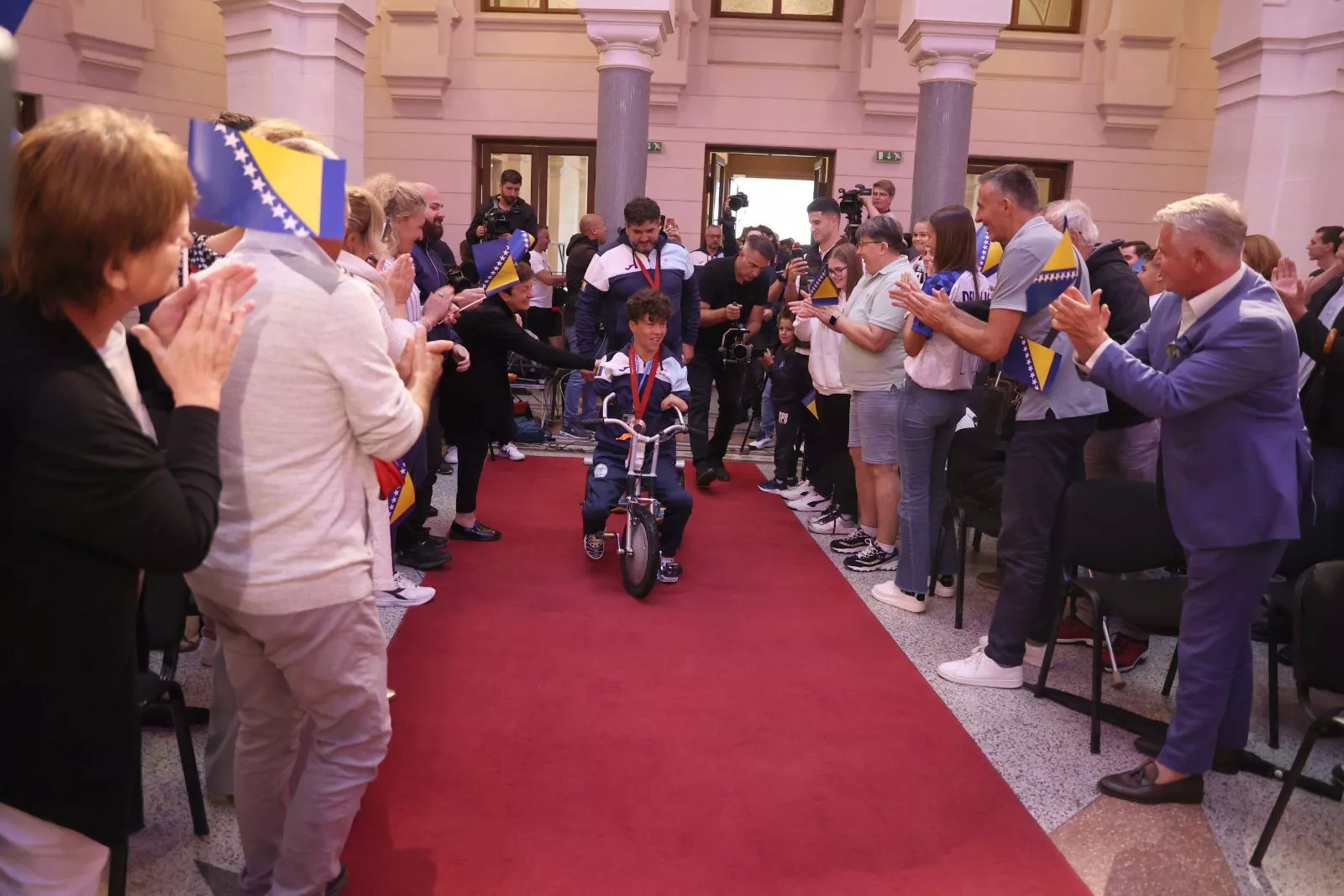 (Patria) - U Gradskoj vijećnici u Sarajevu danas je upriličen svečani doček za reprezentaciju BiH u sjedećoj odbojci i paraplivača Ismaila Barlova.