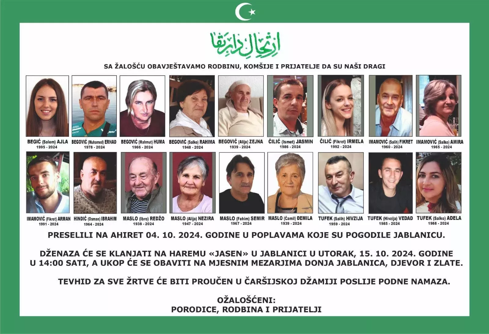 Tijelo je pronađeno u Grabovičkom jezeru prilikom čišćenja, a riječ je o ženi kojoj će također danas biti klanjana dženaza u gradskom haremu Jasen u Jablanici, zajedno s ostalih 18 žrtava.