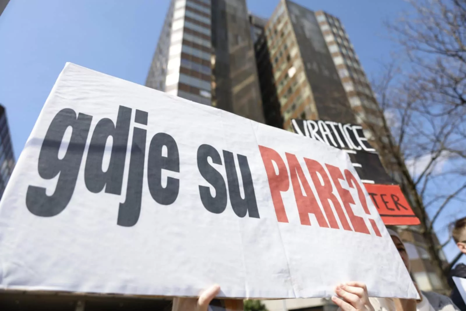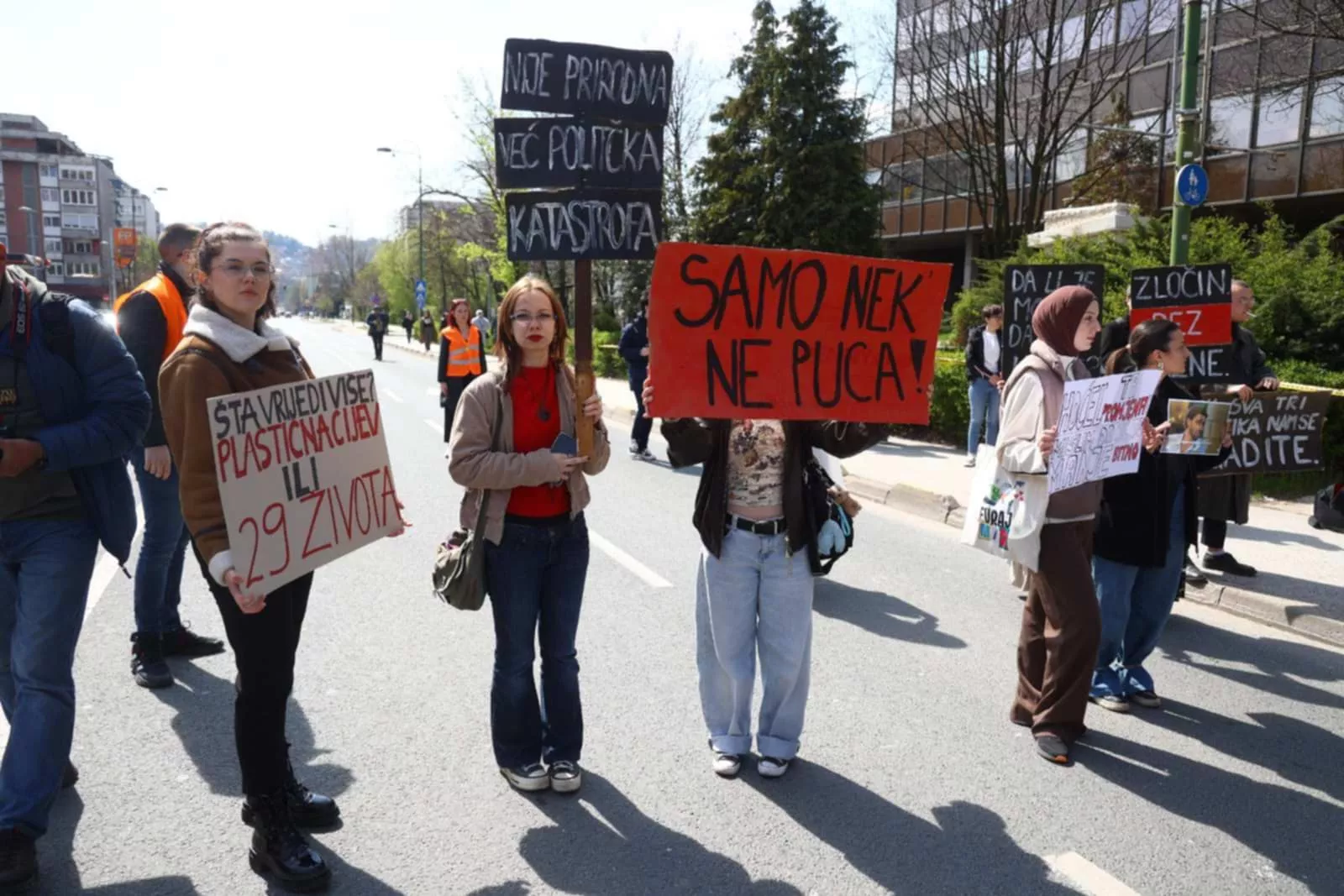 "Gdje su pare", "Samo nek ne puca", "Nije prirodna već politička katastrofa", pisalo je na transparentima studenata.