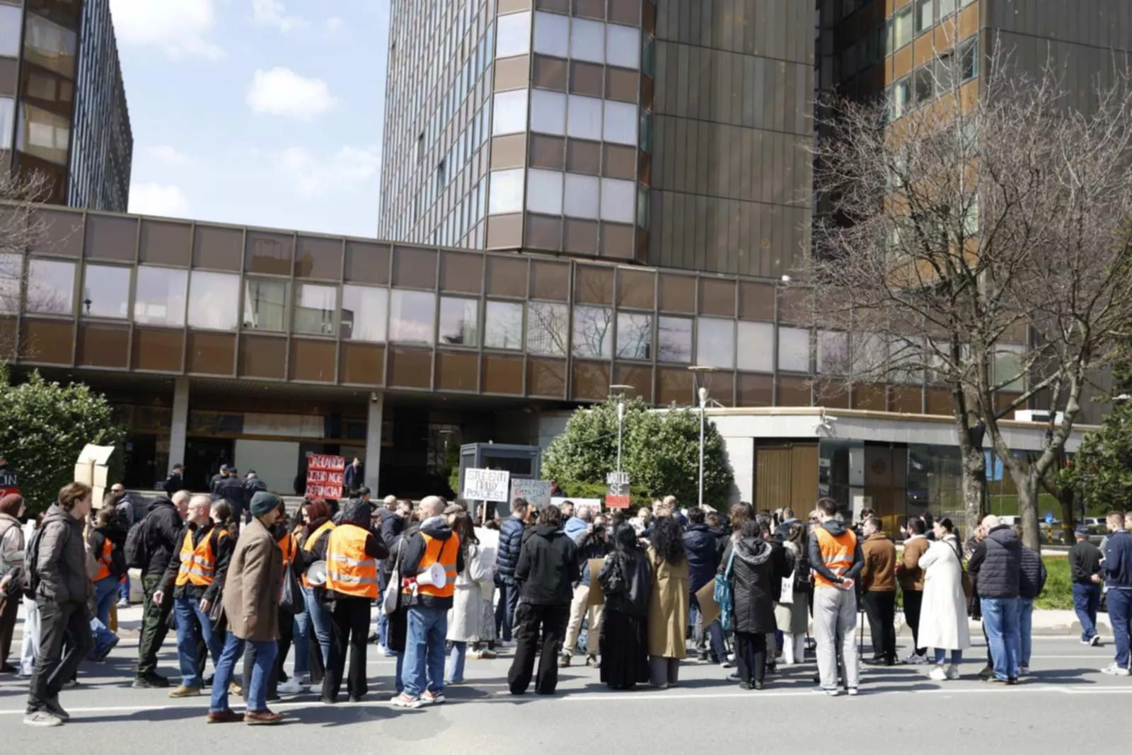(Patria) - Pred zgradom Vlade FBiH održava se protest neformalne grupe studenata "Hoće l' ta promjena", a bez obzira na nešto slabiji odziv, okupljeni su poslali poruke i putem transparenata i u izjavama za medije.