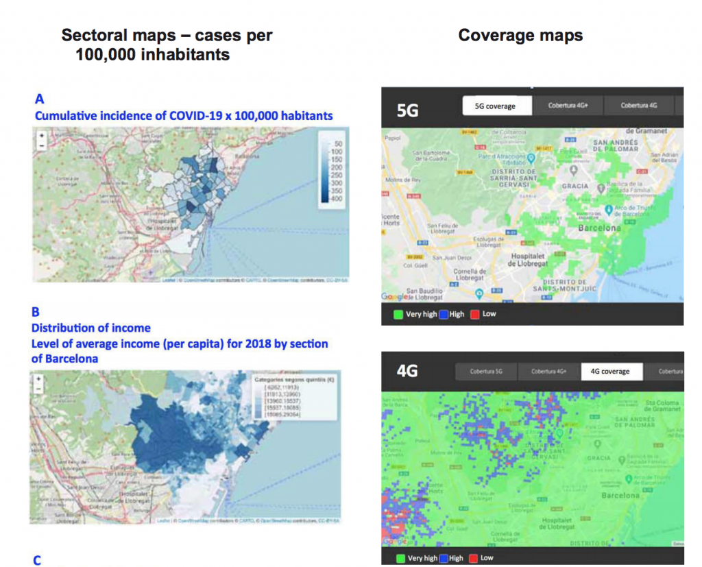 7. Barcelona: Grafikoni s 5G pokritostjo in stopnjo okužbe