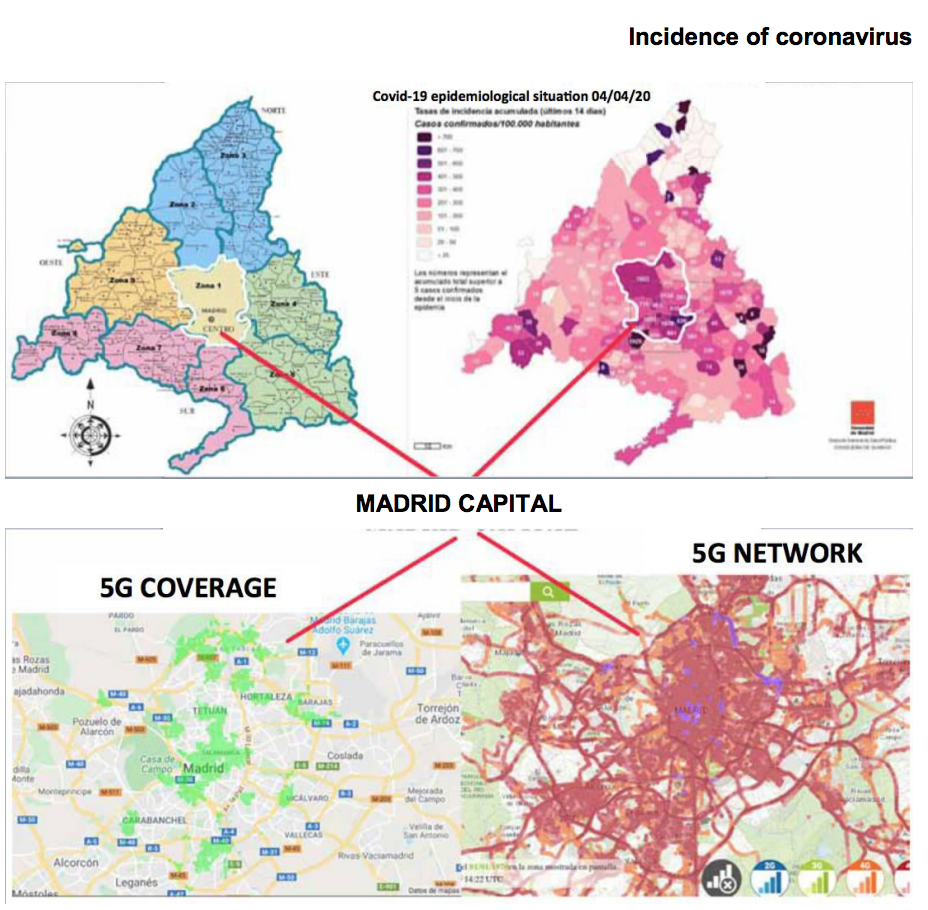 Pandemija COVID-19 in njeni učinki v začetku leta 2020 so presenetili znanstvenike in politike. Če se izvede katera koli raziskava, ki je namenjena razumevanju pojava in ki lahko posledično pomaga razjasniti vzroke pandemije, jo je treba spodbujati in / ali upoštevati. Povezava med primeri bolezni COVID-19 zaradi koronavirusa SARS CoV-2 in prisotnostjo omrežij 5G je bila obravnavana v alternativnih medijih in na družbenih omrežjih. Omeniti velja, da mediji, vsaj v Španiji, na dnevnih tiskovnih konferencah niso poročali o znanstvenih raziskavah na temo 5G in niso postavljali vladi nobenih vprašanj o 5G. Tudi skupina znanstvenikov, ki svetuje španski vladi, tega vprašanja ni postavila.