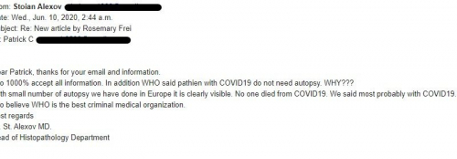 Among the myriad ways the WHO is creating that chaos is by prohibiting almost all autopsies of people deemed to have died from COVID-19. As a result, reported Dr. Alexov, by May 13 only three such autopsies had been conducted in Bulgaria.