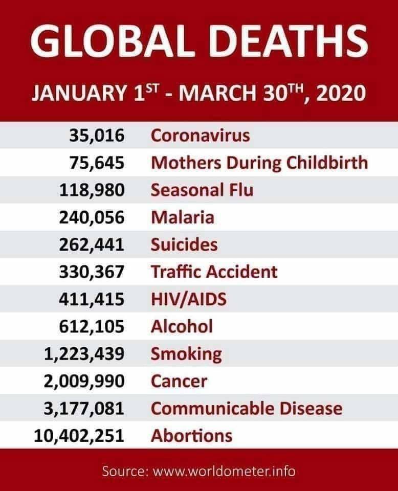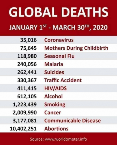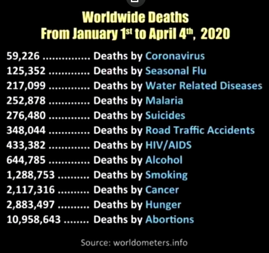 One American News poroča: LAŽNA COVID-19 STATISTIKA:Bolnišnice v ZDA (zagotovo tudi povsod po svetu) so štele med COVID-19 smrti tudi bolnike, ki so imeli resne druge bolezni. Ameriški center za nadzor bolezni poroča, da je 51.000 ljudi umrlo zaradi srčnega infarkta. Podatki CDC kažejo, da je koronavirus SARS CoV-2 zelo redko vzrok smrti, ki jih beležijo kot smrti zaradi COVID-19.Od 220.000 COVID-19 smrti v ZDA, jih je:- zaradi gripe in pljučnice je umrlo 88.200 ljudi- zaradi kroničnih respiratornih bolezni je umrlo 17.799 ljudi- zaradi sindroma respiratornega stresa (ARDS) je umrlo 26.365 ljudi- zaradi bolezni povzanih z visokim pritiskom je umrlo 44.000 ljudi- zaradi srčnih bolezni je umrlo 23.000 ljudi- zaradi zastoja in odpovedi srca je umrlo 48.000 ljudiToda vse te smrti, vključno zaradi infarkta, so bile zabeležene kot smrti zaradi COVID-19. Zdravnik je pojasnil, da 131.000 bolnikov, ki so jih zabeležili kot umrle zaradi COVID-19, je imelo že prej smrtonosne bolezni, kot so rak, demenca in 10.000 bolnikov, ki so umrli zaradi COVID-19, je bilo že prej na negi v Hospic domovih, kar pomeni da so bili terminalno bolni in so po pričakovanju umrli zaradi druge bolezni in ne zaradi koronavirusahttps://www.bitchute.com/video/2Twwexyd9YIY/