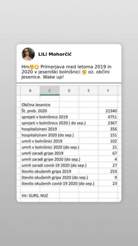 A je bilo zato potrebno menjati direktorja, da nam NIJZ sedaj lahko laže in nas zavaja, s tem, ko daje podatek, da je bilo v letu 2019 število smrti zaradi gripe 51, uradni podatki v začetku aprila lani pa so, da je bilo v prvih treh mesecih število smrti zaradi gripe več kot 160.