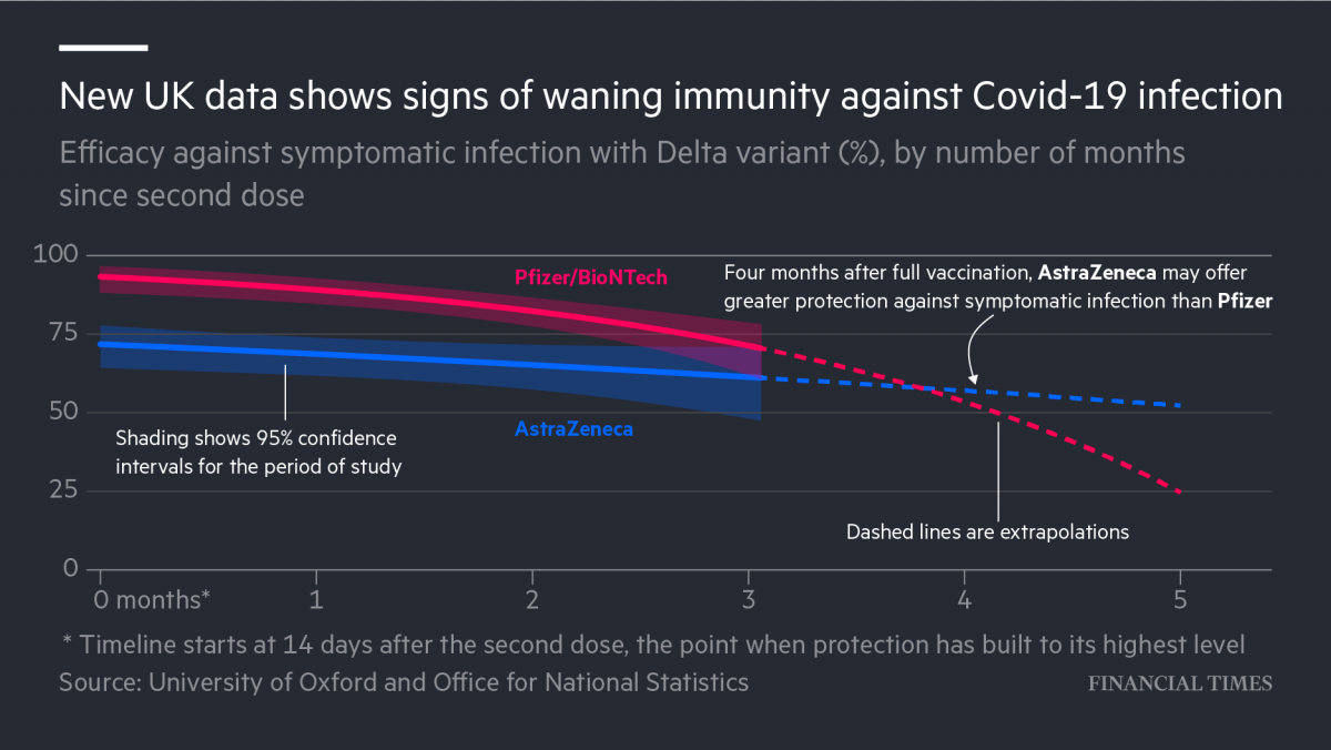 Medtem pa študiji iz Izraela in Katarja, v sredo objavljeni v medicinski reviji New England Journal of Medicine, nakazujeta, da imunost po cepljenju s cepivom Pfizerja popusti po dveh mesecih, čeprav da je zaščita pred hudim potekom bolezni še naprej močna. O tem poroča celo CNN. Izraelska študija je zajela 4800 zdravstvenih delavcev in pokazala, da se raven protiteles po dveh odmerkih cepiva hitro zmanjša, zlasti pri moških, osebah, starejših od 65 let, in pri osebah z oslabljenim imunskim sistemom. Študija še omenja, da je zaščita močnejša pri prebolevnikih. V študiji iz Katarja so proučevali dejanske okužbe med visoko precepljenim prebivalstvom zalivske države, kjer so večinoma cepljeni s Pfizerjevim cepivom.
