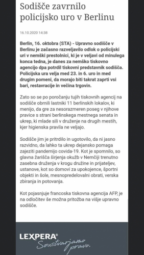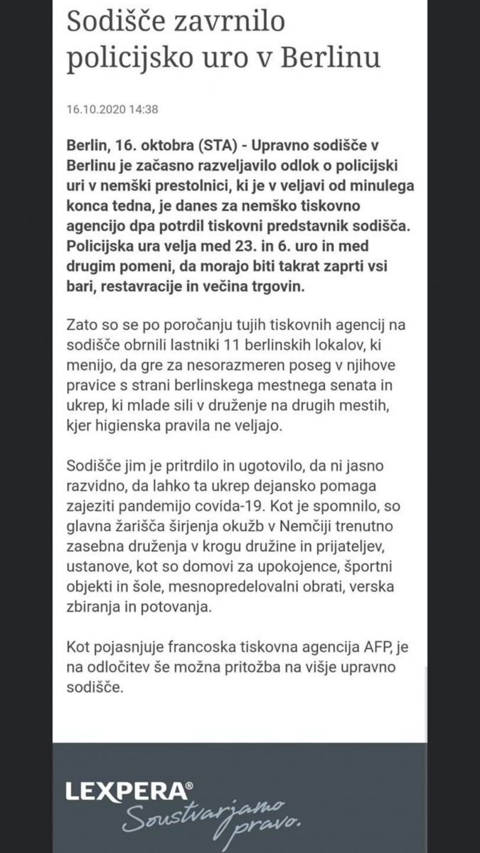 Francoski senat je odločil, da se gostilne ne smejo zapirati. Tako je odločilo tudi nemško sodišče. https://www.dailymail.co.uk/news/article-8847125/Berlin-court-overturns-order-shut-Berlins-bars-restaurants-11pm.html