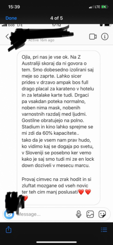 Na Tolminskem so odprli telefonsko številko za pomoč občanom v stiski. "Ljudje so ostali brez službe, brez zaslužka, cele dneve so bili sami zaprti doma, česar niso bili vajeni," je povedal psiholog Žarko Trušnovec."Glavna težava je to, da nihče ne ve, koliko časa bo to trajalo, ampak to je težava odločevalcev. Tukaj pa mislim, da so v poznavanju človeške psihologije pogrnili na celi črti. Ne moremo s strašenjem in z govorjenjem o katastrofah spodbuditi ljudi, da se bodo držali tega, kar zapovedujejo." Zato najbolj pogreša optimistična sporočila.