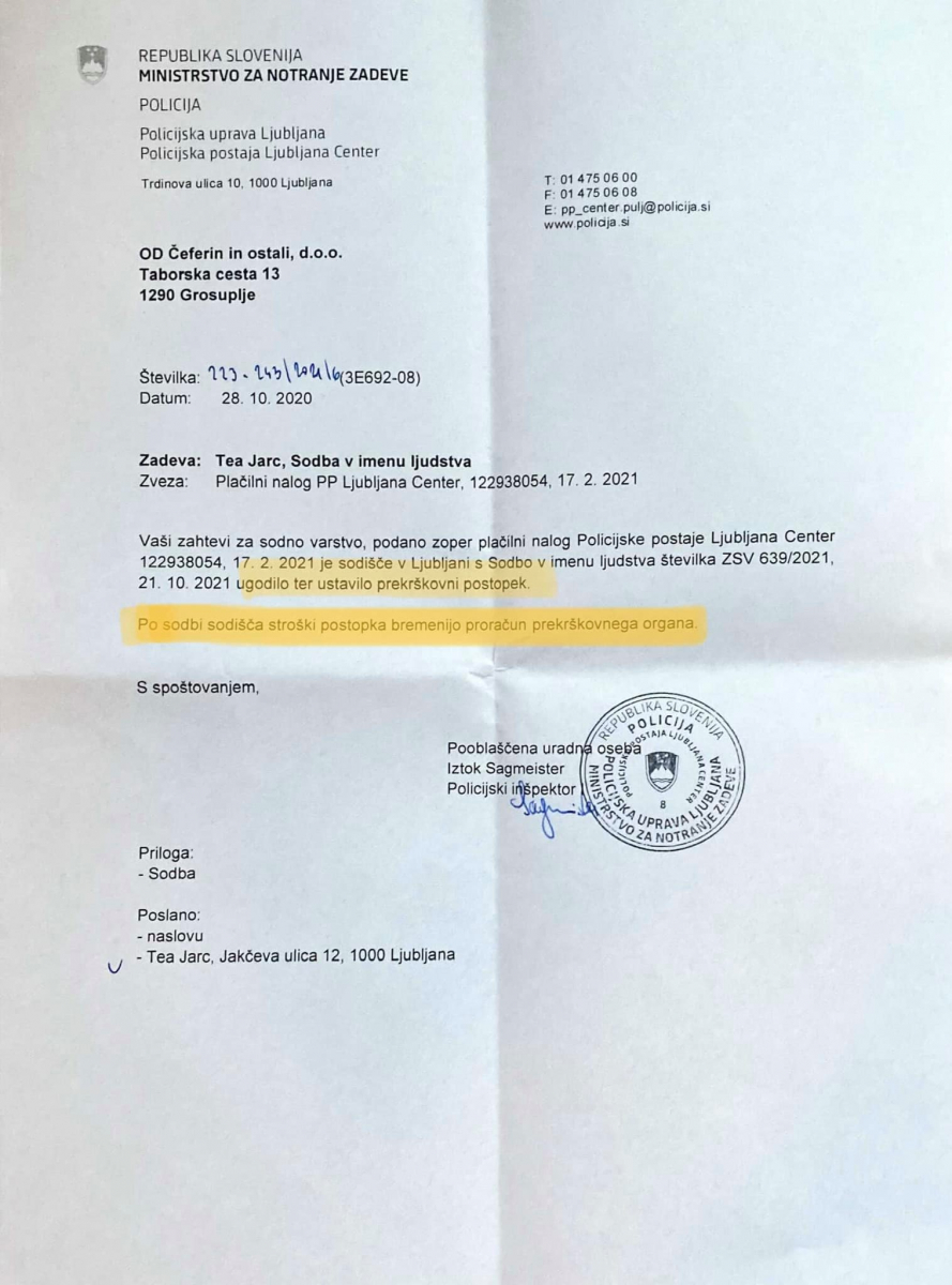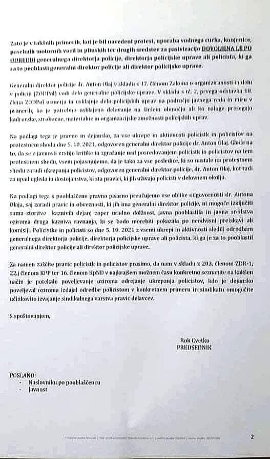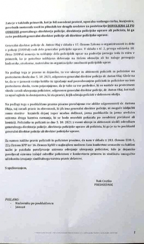- nastopa predstavnika Policije g. Danijela Lorbek (direktorja Uprave uniformirane policije GPU) v medijih dne 5.10.2021 o ukrepanju Policije po zaključku policijskih intervencij, ki je te dvome javnosti še bolj utemeljil