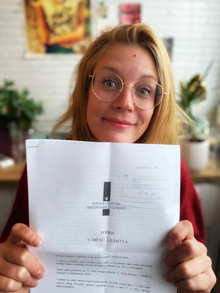 Februarja sem dobila kazen v višini 733,83€, ker naj bi bila na neprijavljenem shodu, kar pa naj bi bilo prepovedano. Kot so sodišča že večkrat ugotovila, se mora spoštovati pravica do protestov in v tem primeru ne gre za kršitve!