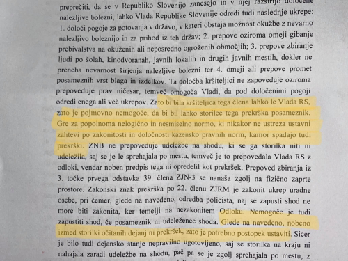 Tudi policija omejevanja gibanja ni konkretno utemeljila, omejila in označila, kar je prav tako nedopustno. Razgnala je vse protestnike, četudi je velika večina protestirala povsem mirno.