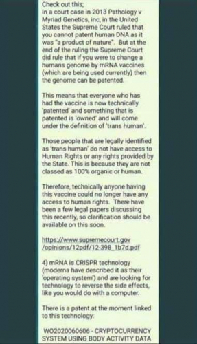 She also discusses during the interview how the Supreme Court agrees that it is entirely possible to patent humans and turn them into the property of pharmaceutical companies through these types of injections, which contain “exotic nanobots” and other futuristic tech.