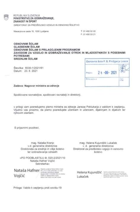~MIZŠ, dne 6.4.2021, za Ministrico dr. Simono Kustec, podpisana pooblaščena oseba: Anže Likozar, po pooblastilu št. 1002-43/2012/9, z dne 3.12.2013