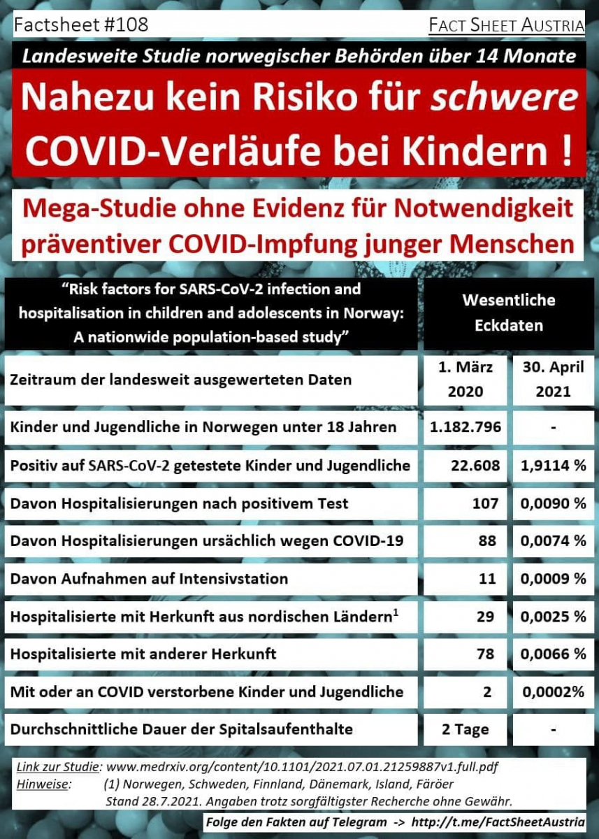 Norveška je naredila meta študijo o vseh sprejemih otrok starih do 18 let za obdobje 14 mesecev (od 20.03.2021 do 21.04.2021).