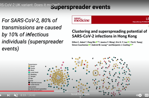 COVID-19 se širi preko precej majhnega deleža populacije, a hitrejše širjenje ni posledica novega- mutiranega genoma koronavirusa, saj je znano, da večino okužb širijo t.i. "super prenašalci" na določenih skupnih dogodkih.