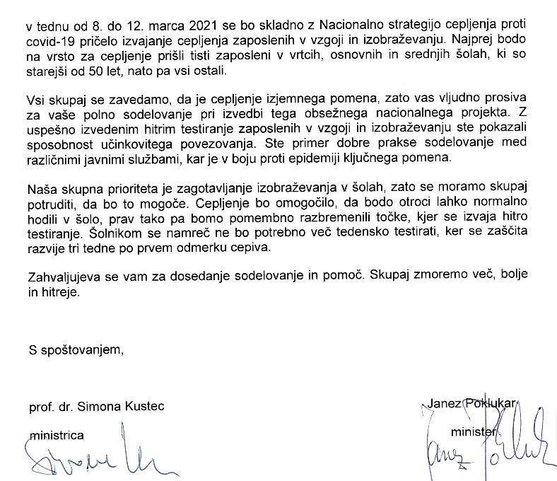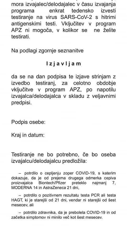 In pač povem, da jaz te izjave podpisala ne bom, ker se testirala in cepila ne bom, ker sem ZDRAVA.