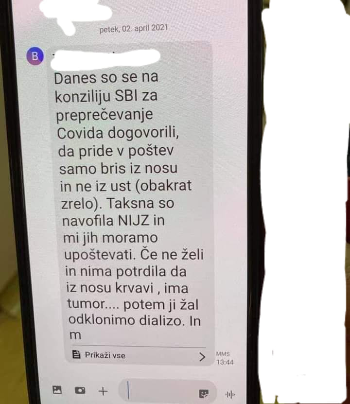 "Menim, da je umik tega odloka nujen, če ne želimo dopustiti popolne kontrole in represije nad nami brez tehtnih argumentov. Imam občutek, da poslanci, ki bodo v kratkem glasovali o Zakonu o nalezljivih boleznih – ZNB, kot tudi širša javnost, o posledicah tega odloka oziroma možnostih zlorabe niso bili informirani."