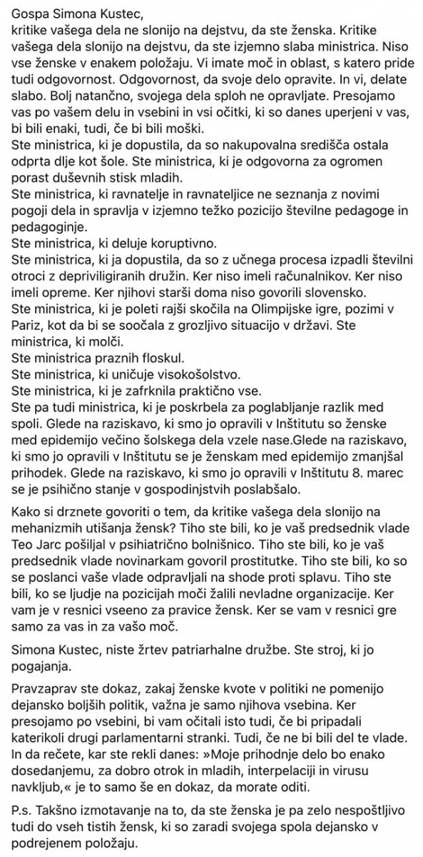 https://andraz-tersek.si/spostovana-ministrica-dr-simona-kustec-ponudil-bi-vam-dlan-v-pozdrav-tudi-ramo-prizanesljivosti-pa-tudi-vljuden-klepet-a-res-zelo-res-ne-bi-smeli-biti-vec-ministrica-ali-pa-bi-morali-od-prve/?fbclid=IwAR0qTvddJ6RPCZdDHkpCskfuxqenJxnJ9tHW21zWjmkA4fXPwuWayiKGo0s
