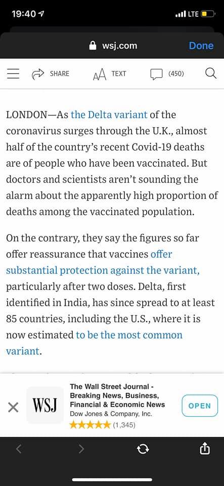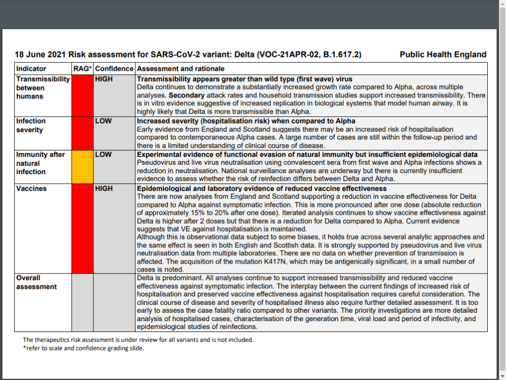 “It is very clear from the UK Technical Briefing13 that was published June 18th that the vaccine provides no protection against the Delta variant. It’s a very mild variant.
