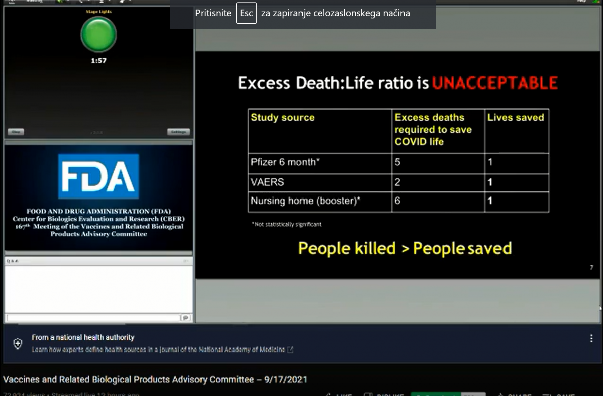 FDA zaslišanje 17.9. 2021 je trajalo 8 ur: https://www.youtube.com/watch?v=WFph7-6t34M