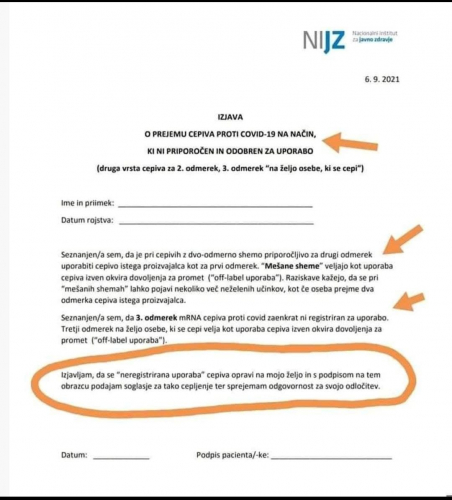 NIJZ ne upošteva odsvetovanja FDA za tretji odmerek za ljudi do 65 let in še dalje poziva ljudi, da se cepijo na lastno odgovornost: