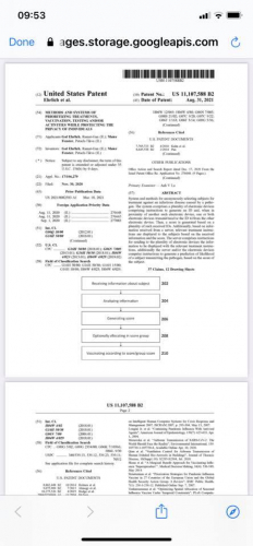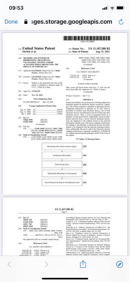 "Ta Pfizerjeva patentna vloga je bila odobrena 31. avgusta 2021 in je prvi patent, ki se pojavlja na seznamu več kot 18500 patentov za namen sledenja stikov na daljavo vseh cepljenih ljudi po svetu, ki bodo ali so že povezani z "internet of things (IoT)" s kvantno povezavo pulzirajočih mikrovalovnih frekvenc 2,4 gHz ali več iz mobilnih stolpov in satelitov neposredno na grafen oksid.