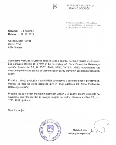 USTAVNA POBUDA (PROSIM ZA ABSOLUTNO PREDNOSTNO OBRAVNAVO)