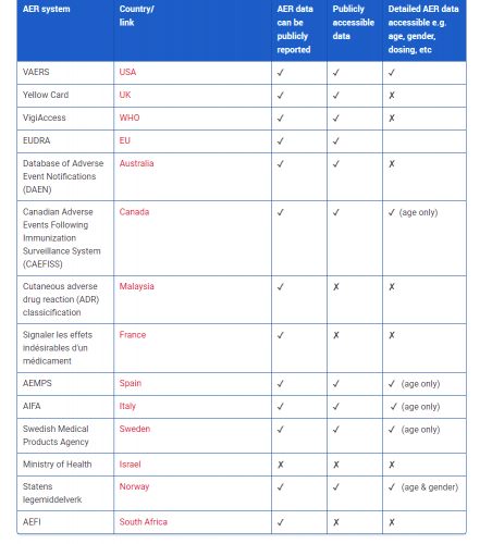 Kje torej lahko spremljamo razplet neželenih dogodkov? Glavni portali za take podatke so uradni, vladno nadzorovani sistemi poročanja o neželenih dogodkih, ki jih je veliko (preglednica 2). Vse podatke lahko vnese javnost ali zdravstveni delavci, vendar vsi niso dostopni javnosti. Splošno znano je, tudi v ameriškem sistemu poročanja o neželenih dogodkih pri cepivih (VAERS), da je prenizko poročanje normalno za vse take pasivne sisteme poročanja. Poročanje o resnih neželenih dogodkih je verjetno večje kot poročanje o manj resnih neželenih dogodkih, ki je lahko le 1-odstotno. Zdravstveni organi imajo tudi možnost, da po poročanju izločijo rezultate, če se ne strinjajo, da je dogodek povezan z izpostavljenostjo cepivu.