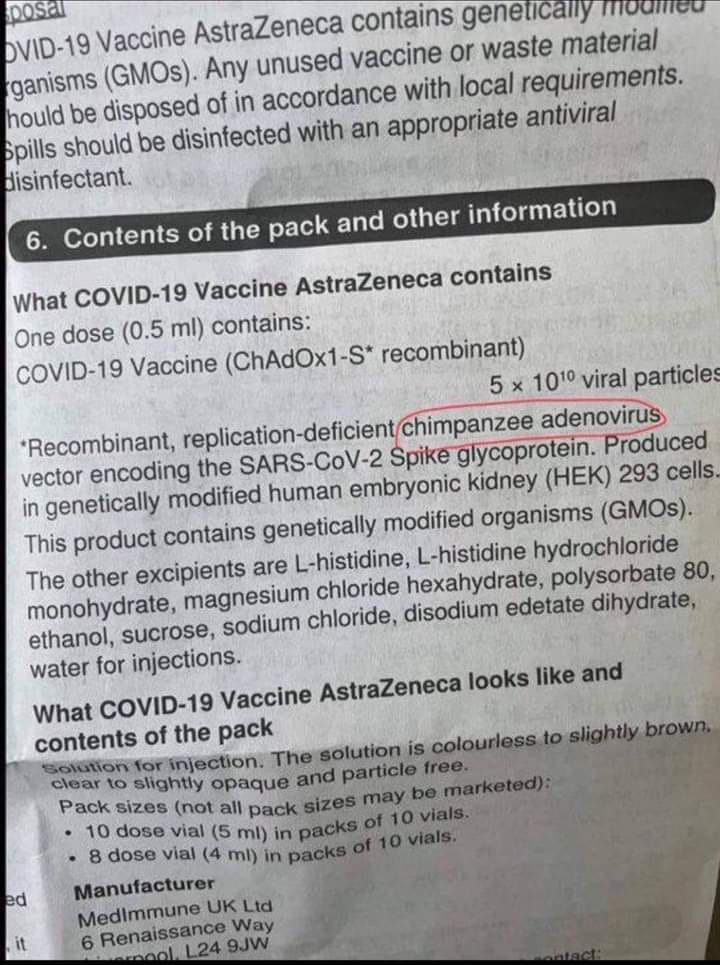 Uradni dokumenti kažejo, da so opičje koze krinka za poškodbe imunskega sistema, ki jih je povzročilo cepljenje s cepivom za COVID, kar je povzročilo pasavec, avtoimunsko bolezen z mehurji in okužbo s herpesom.