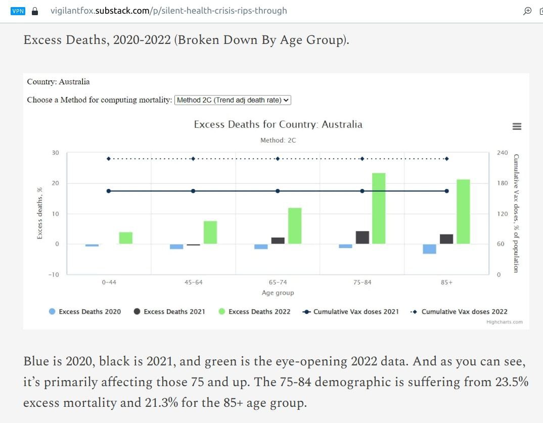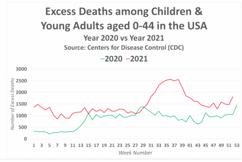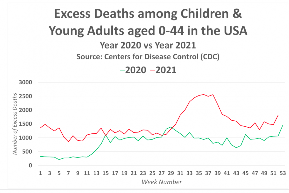 Leto 2022 je na dobri poti, da preseže ogromno število smrti v letu 2021. Prekomerna smrtnost pred cepljenjem je bila 876 na teden. Število smrtnih primerov po cepljenju 1 413 na teden. To je 62-odstotno povečanje