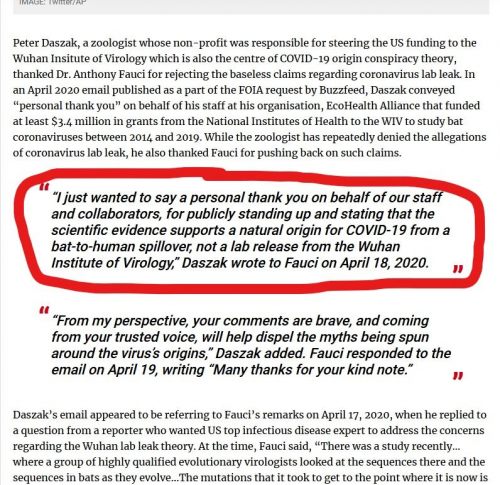 Vendar so nekateri vpletenost laboratorija Wuhan hitro zavrnili kot"teorijo zarote". Laboratorij je, podobno kot kitajsko vodstvo, vztrajal, da mora biti vir okužbe wuhanska tržnica z divjimi živalmi. Čeprav je bil prvi potrjeni primer COVID-19 v Wuhanu oseba, ki ni imela nobene povezave s tržnico z morsko hrano v Huananu, so kitajski uradniki hitro okrivili tržnico, kar je tudi Svetovna zdravstvena organizacija vneto ponavljala.
