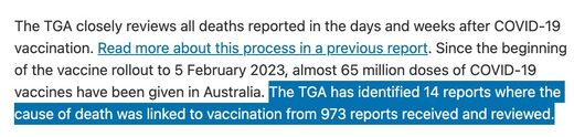 TGA in uradni zdravstveni predstavniki so Avstralce lažno in zavajajoče obvestili, da je bilo od 973 prijavljenih smrti samo 14 ocenjenih kot vzročno povezanih s cepivi proti covidu (13 po Astra Zeneci, 1 po Moderni).