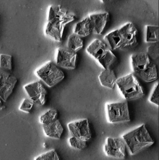 V vzorcu podjetja Pfizer je bilo v vzorcu kapljic opaziti na tisoče kock, glejte sliko 4a: kocke v Pfizerju in slika 4b: Pfizerjeva povečana kocka.
