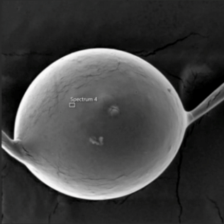 Rentgenska difrakcijska spektroskopija površine nanosfere Mikrotech ("spekter 4" na sliki 3) je ponovno pokazala sestavo, predvsem iz ogljika in kisika.