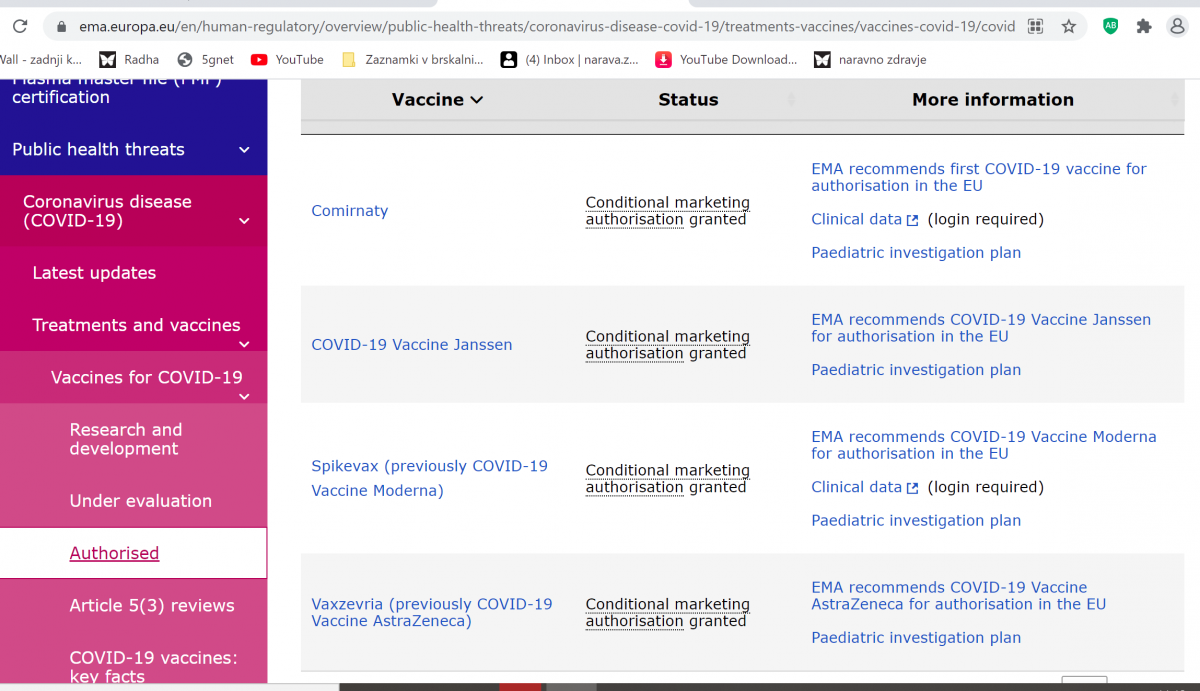 16. DOKAZ EMA: vsa cepiva imajo pogojno dovoljenje za uporabo https://www.ema.europa.eu/en/human-regulatory/overview/public-health-threats/coronavirus-disease-covid-19/treatments-vaccines/vaccines-covid-19/covid-19-vaccines-authorised