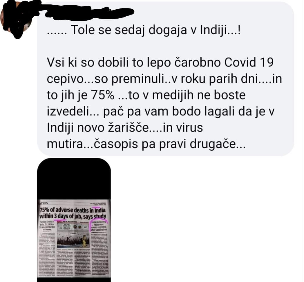 Lažne novice o umiranju zaradi COVID-19 v Indiji so namenjene propagandi za uvajanje obveznega cepljenja.