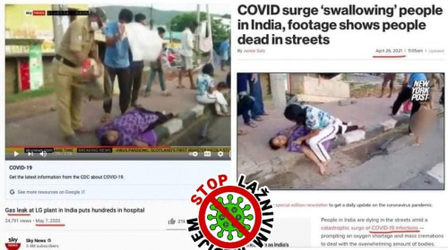 Mediji medtem objavljajo lažne novice o umiranju ljudi na cestah zaradi COVID-19, kar pa so v resnici več let stare slike umiranja ljudi, tudi zaradi spročanja plina v neki indijski državi.