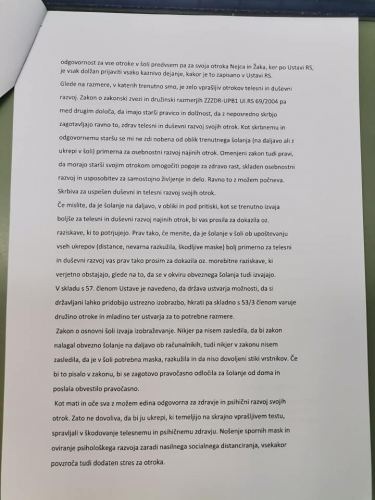 P.S. tu prilagam še vprašanja glede obveznih mask v razredih, poslana odgovornim, na katera še nisem dobila odgovora: