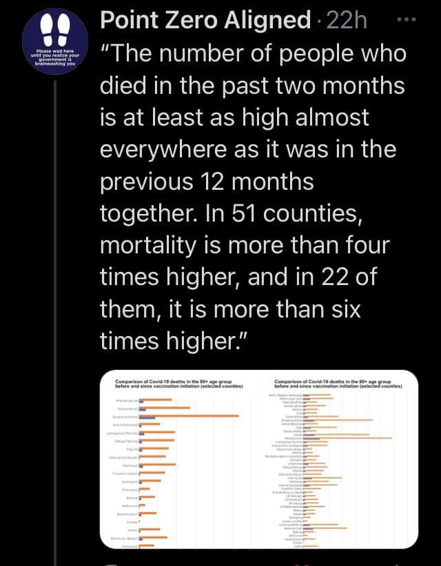 Fuellmich pove, da je v Nemčiji 10-20% ostarelih v domovih, ki so bili cepljeni, 3-4 tedne po cepljenju umrlo. Pravi, da je 10% ljudi na planetu sposobnih "moralne presoje", se pravi, da nas 10% ljudi vidi, da gre za prevaro.