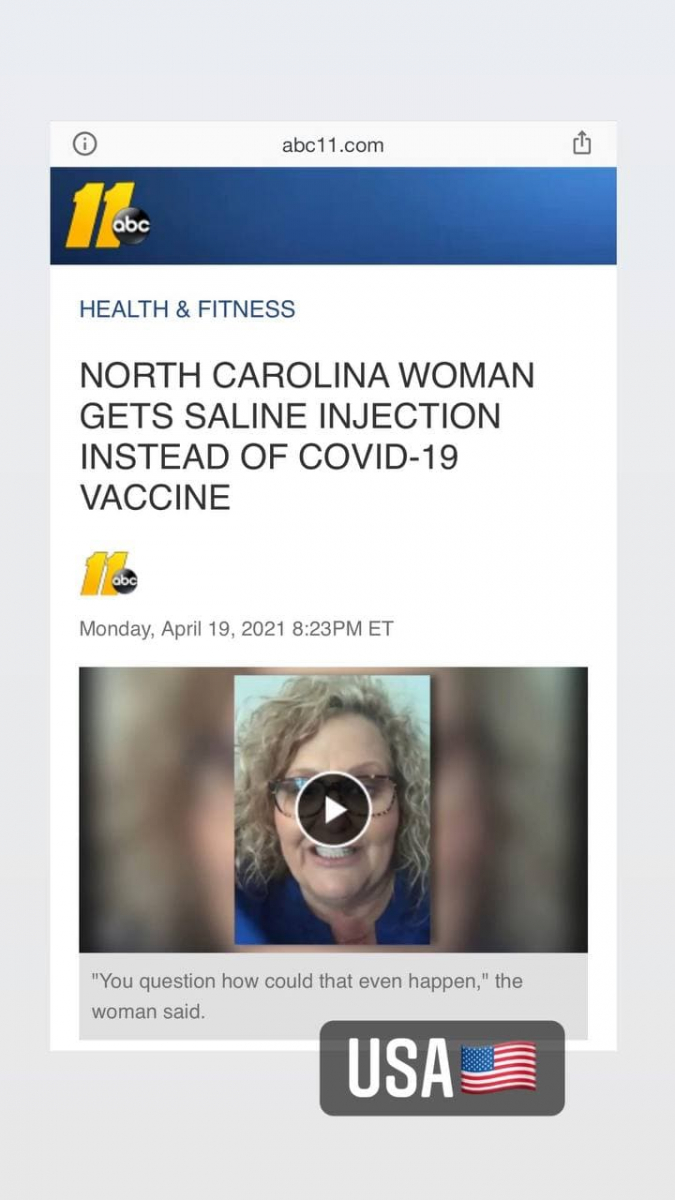»Moji stari teti, stari 96 let, je bila v domu za ostarele dobro, vendar je imela šibko srce. Prvi odmerek je dobila zato, da bo lahko dlje živela. Dva dni kasneje je bila smrtno bolna. Najprej je zdravnik rekel, da ni bilo krivo cepivo, kasneje pa si je premislil. Umrla je teden in pol kasneje. "