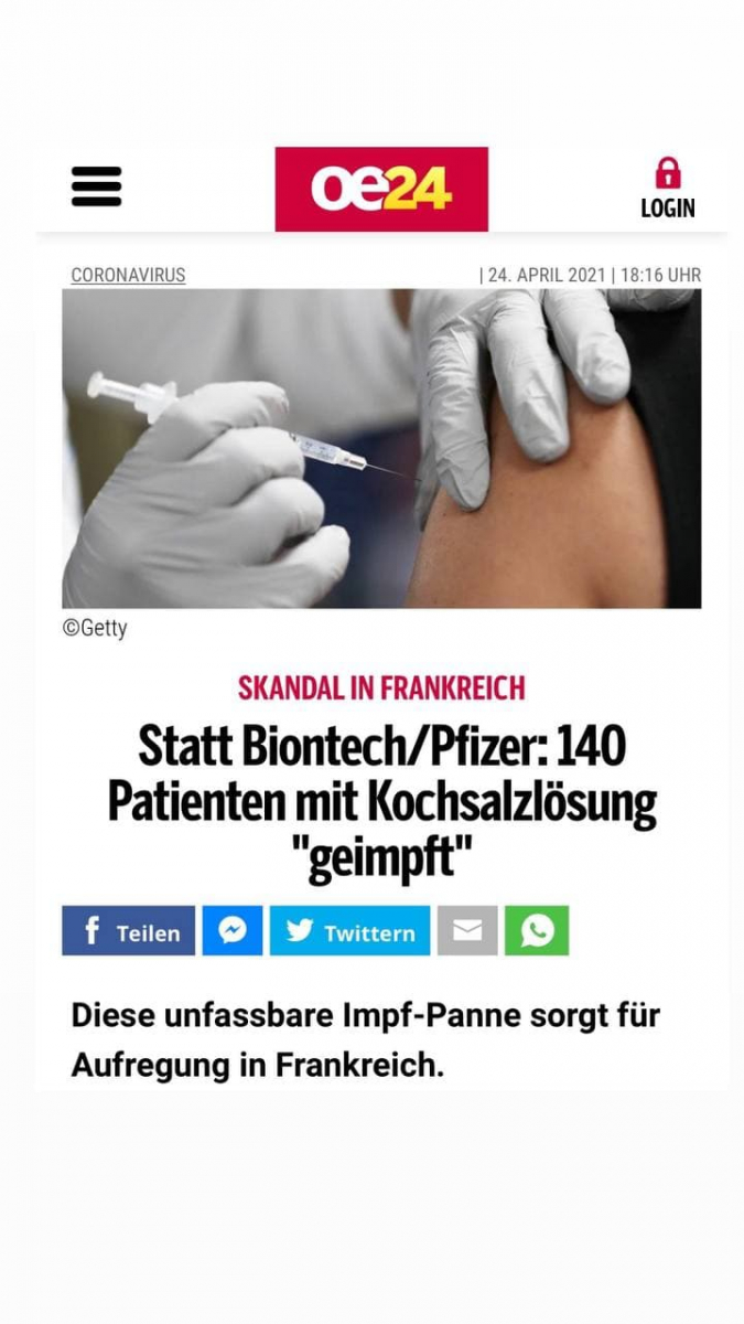 »Natanko tako! V našem domu je po prvi injekciji umrlo šest ljudi, trije pa so bili hospitalizirani. Rekli so nam, naj o tem ne povemo družini in prijateljem. Dobrodošli v tem strupenem svetu! "