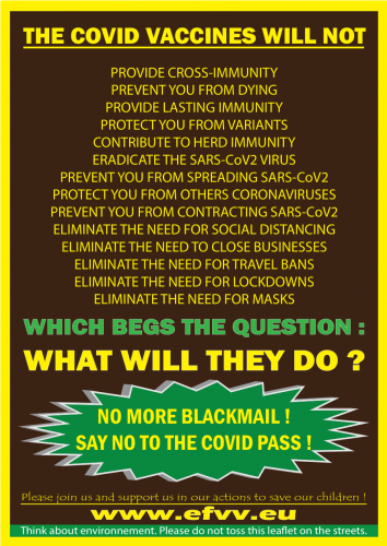 Fouché je jasno povedal, da odsotnost neželenih učinkov v dveh mesecih med testiranimi kohortami ne omogoča, da bi kdo sploh kaj sklenil o pojavnosti neželenih učinkov, ki se pojavijo pozneje... Zavrnite to cepljenje.