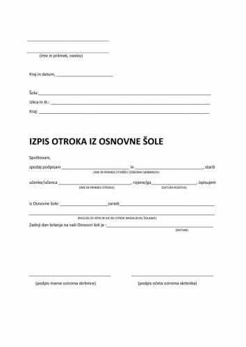 IZPIŠITE OTROKA IZ OSNOVNE ŠOLE, IZPIŠITE GA IZ SREDNJE IN DRUGE ŠOLE.